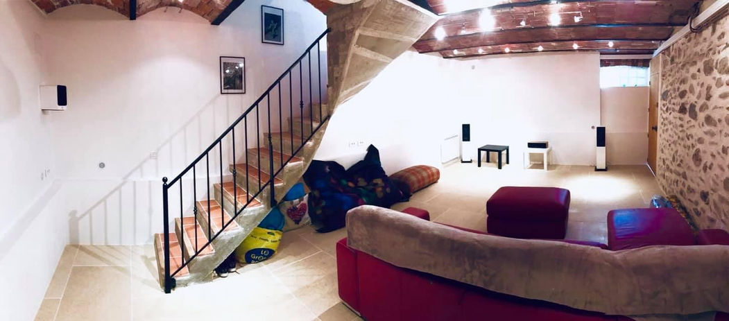 Vanuit de woonkamer komt u via een trap in het souterrain deze is omgetoverd tot een homecinema. Op de grote comfortabele ligbank kunt u hier optimaal genieten van muziek of films.